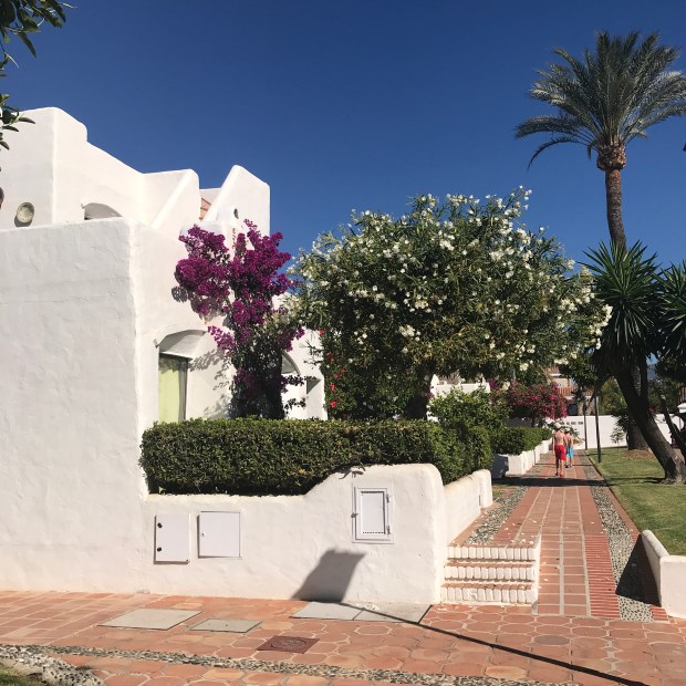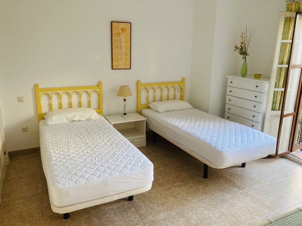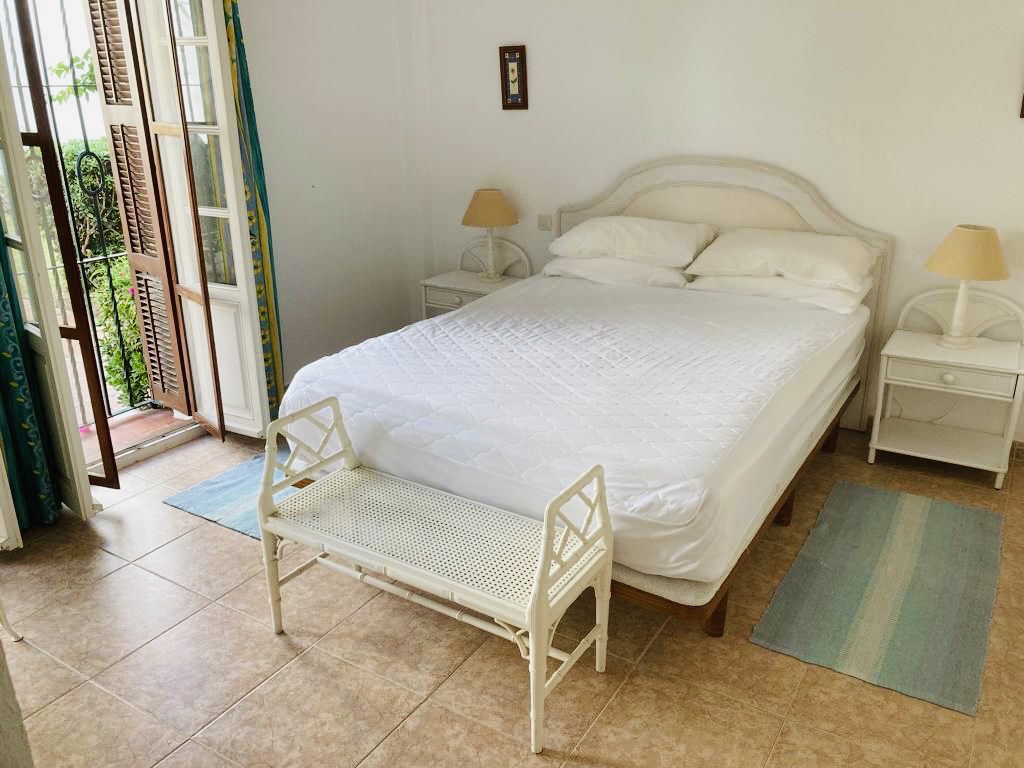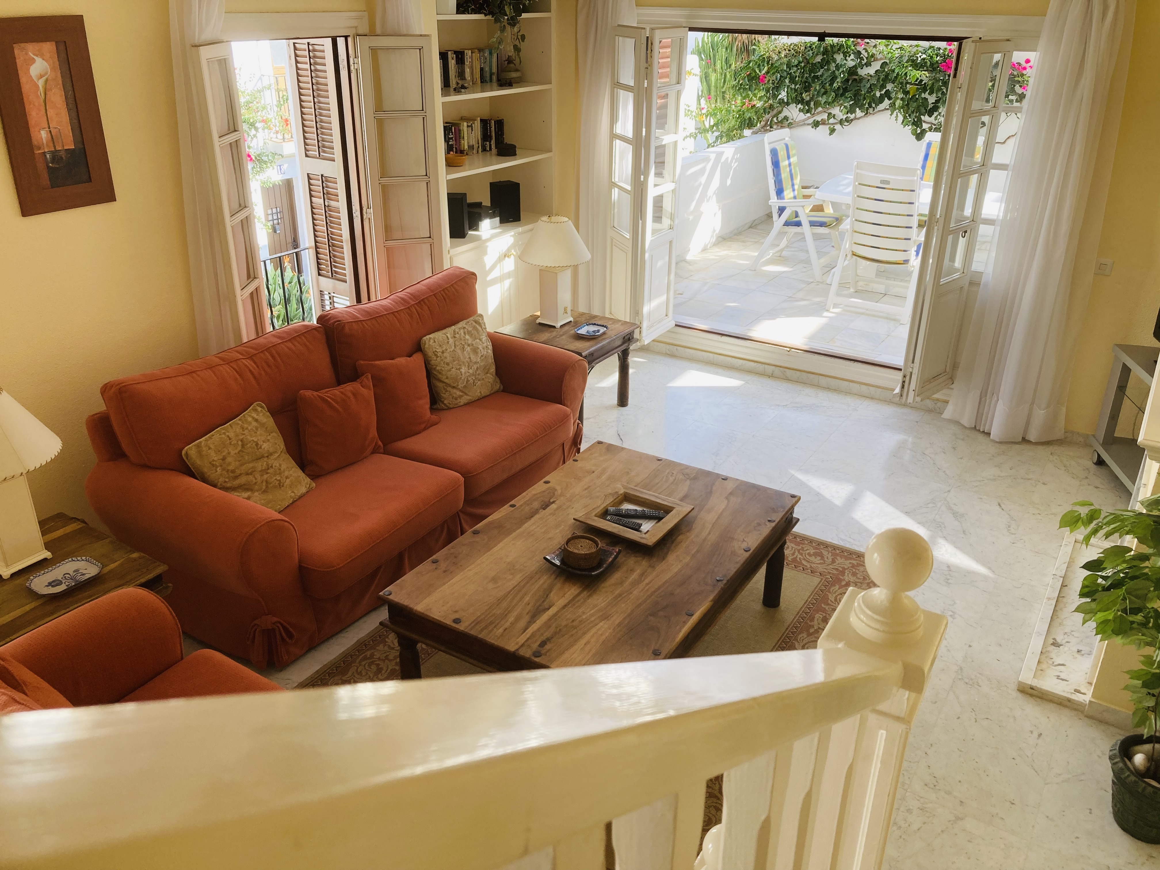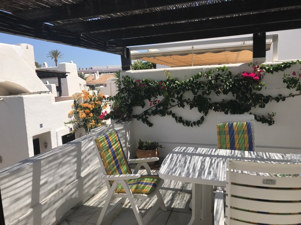 Jorge 25 is tastefully furnished to a high standard, with a welcoming feel. The property is situated amongst beautifully manicured garden terraces surrounded with stunning bougainvillea. The town house was designed along traditional Andalusian lines, with marble floored rooms, attractively decorated, with bedrooms on the ground floor, and living space on the higher levels. Situated on the second floor is the kitchen / dining area along with the sitting room. The kitchen has all the modern appliances required to make your stay comfortable. The sitting room, with two large sofas and TV/ DVD player, opens out onto a charming sun terrace perfect for relaxed dining or sitting to read a book. At the top of the town house is a sun terrace, with sun-beds, sun umbrellas and a shower to cool off after a day in the sun.